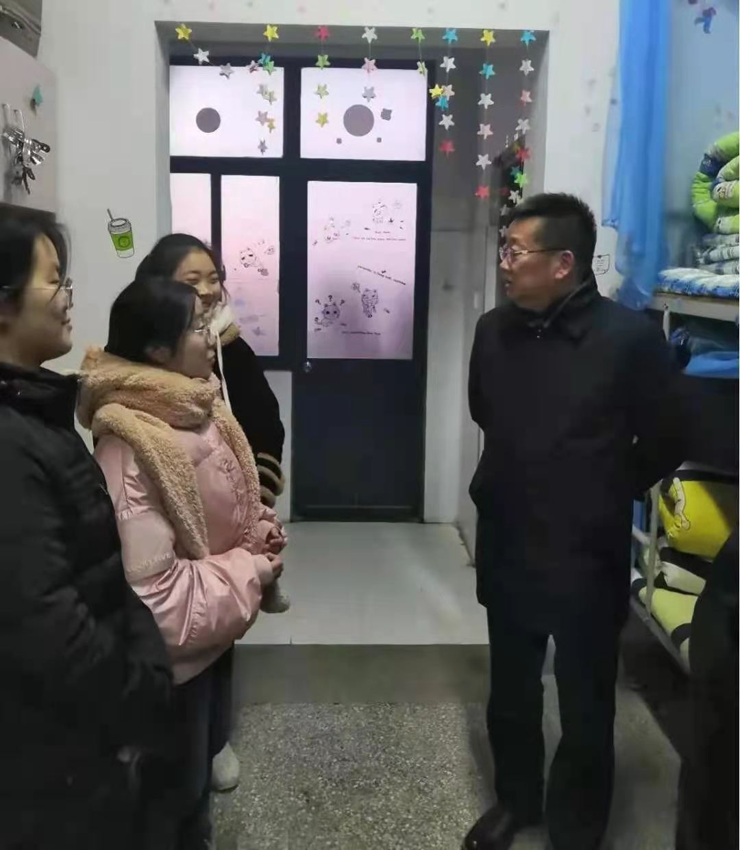 近日,寒潮来袭,气温骤降。为确保学生温暖过冬,校长姜统华带领学工处张彬、李文飞等同志深入学生宿舍,看望学生。姜校长与学生们亲切交谈,关心了解同学们学习与生活近况并详细询问学生有哪些困难,若有困难可以与学工处、后勤等部门进行反馈,学校将尽最大可能帮助大家解决。姜校长特意叮嘱学生,最近天气寒冷,要添衣、添被,注意保暖,同学们若有添被需求,也可以与学工处老师进行申请,学校将免费提供,确保大家在温暖、舒适的环境中幸福过冬,快乐学习。