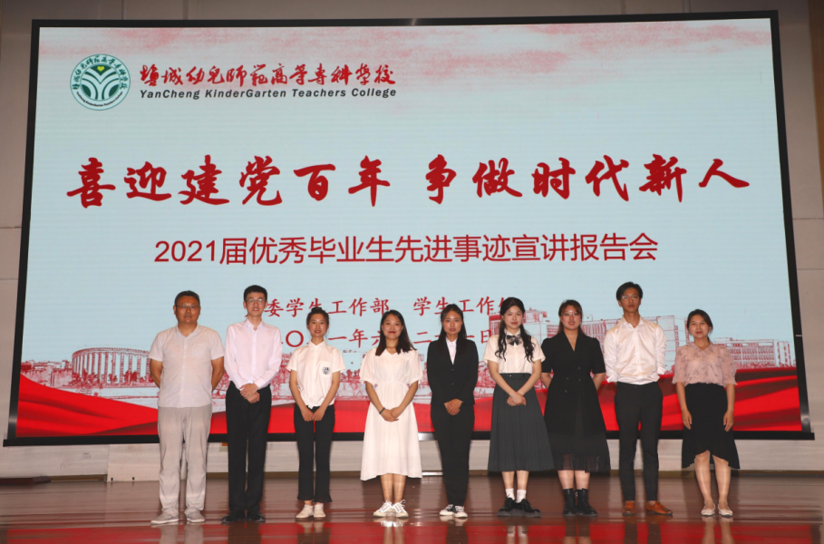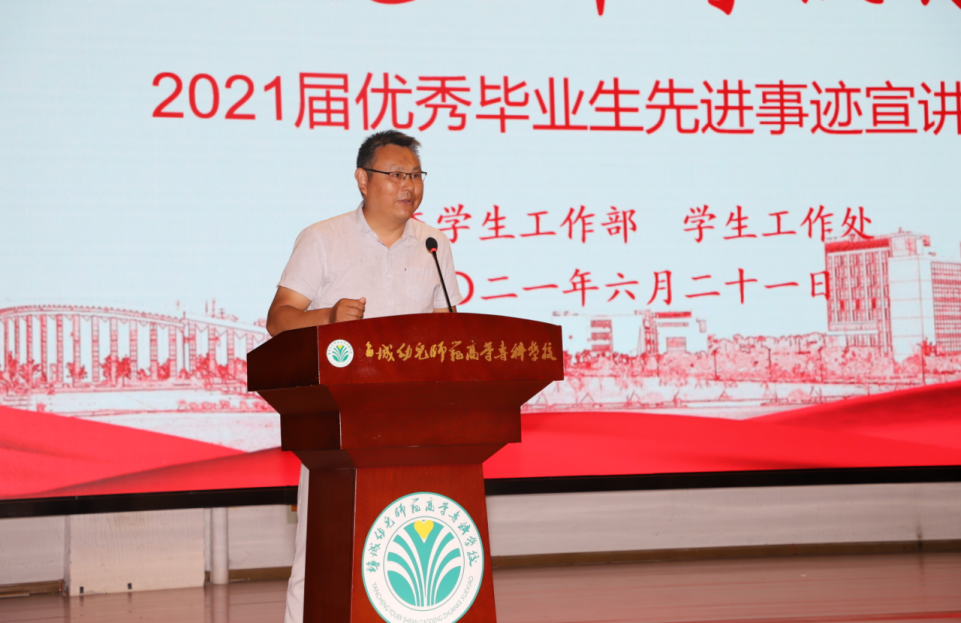 6月21日下午,学工处在学海路校区三楼报告厅举办“喜迎建党百年 争做时代新人”2021届优秀毕业生先进事迹宣讲报告会。学工处副处长李文飞、学生资助中心主任徐元元和全校200余名学生代表聆听了宣讲会。