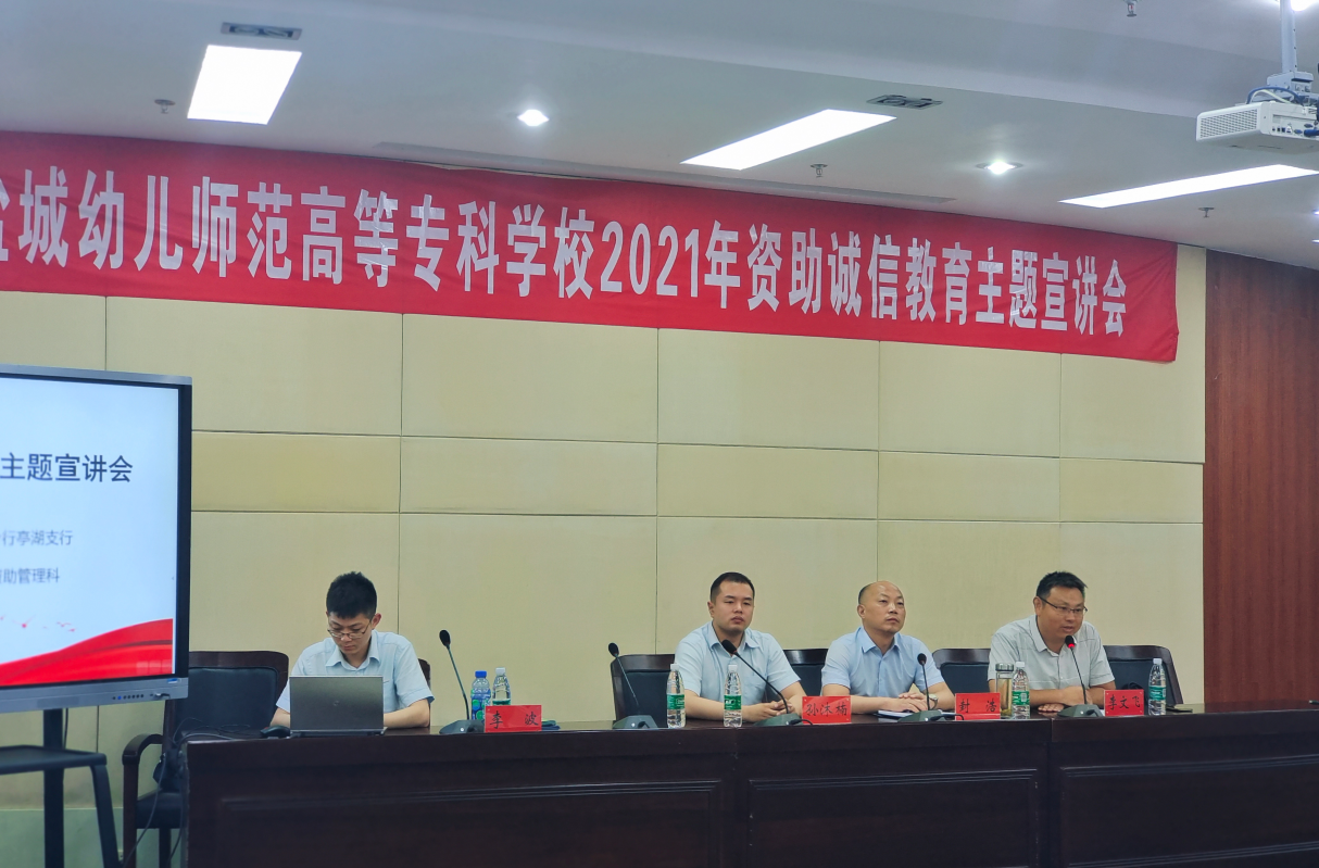 6月22日下午,学工处在海洋路校区行政楼一楼大报告厅举办“诚邀你我,与信同行”学生资助诚信教育主题宣讲会。会议特邀中国建设银行亭湖支行为我校学生讲解金融征信知识,全校200余名贷款学生参加此次会议。