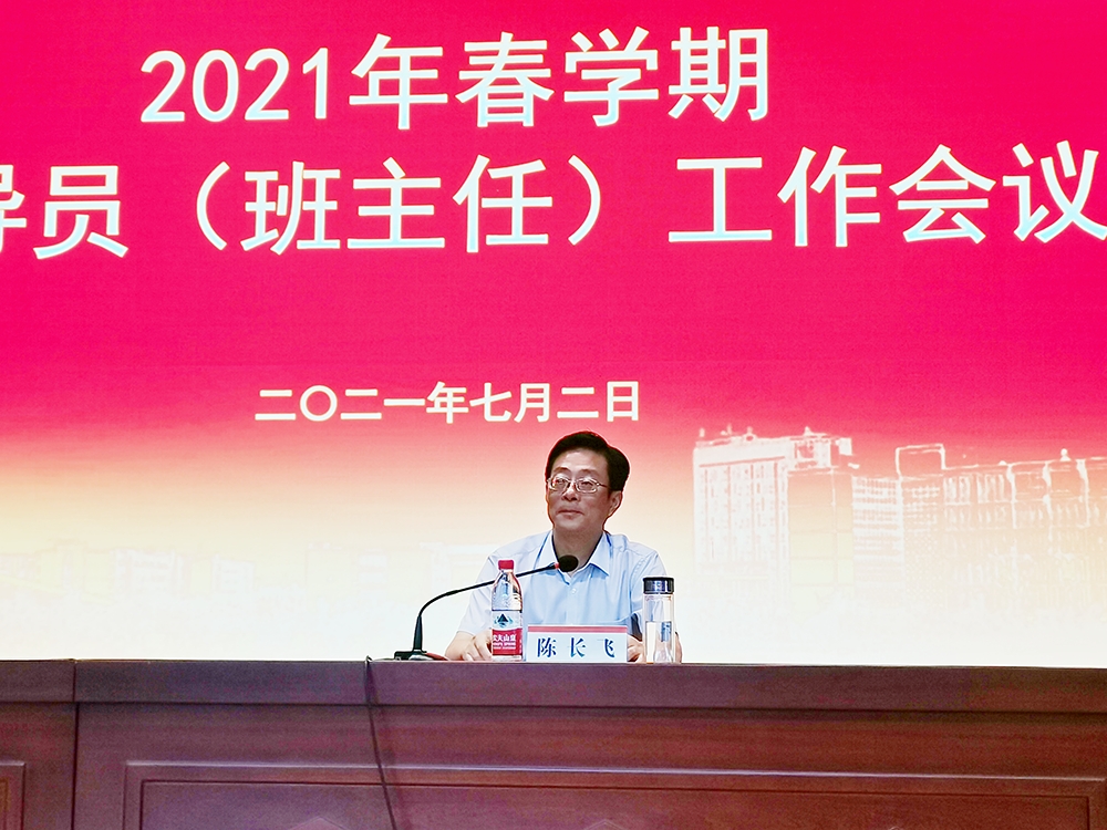 7月2日下午,2021年春学期辅导员(班主任)工作会议在学海路校区行政楼三楼报告厅举行。校党委书记刘毓航、副校长陈长飞出席会议。各学院党总支书记、学工院长、团总支书记、全体辅导员(班主任)及学工处、团委、安保处全体成员参加会议。会议由副校长陈长飞主持。