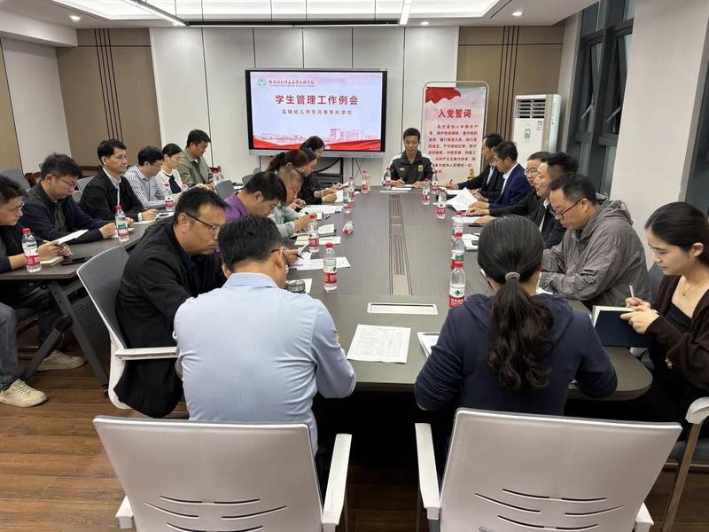 观摩结束后,全体学生管理干部齐聚会议室,进行交流研讨与工作部署。会议伊始,基础教育学院党总支书记李宇健围绕宿舍文化建设与学生管理工作进行经验汇报。基础教育学院学生工作实施123工程,即坚持一个核心理念:坚持阳光体育文化;两个核心抓手:抓学生的文明礼仪形象,抓阳光体育社团建设;近期做好三件事:新生军训、社团建设、活动赛事。随后,各学院学工院长结合自身工作实际,围绕宿舍文化建设、学生日常管理、重点学生帮扶等工作进行心得分享与交流研讨。